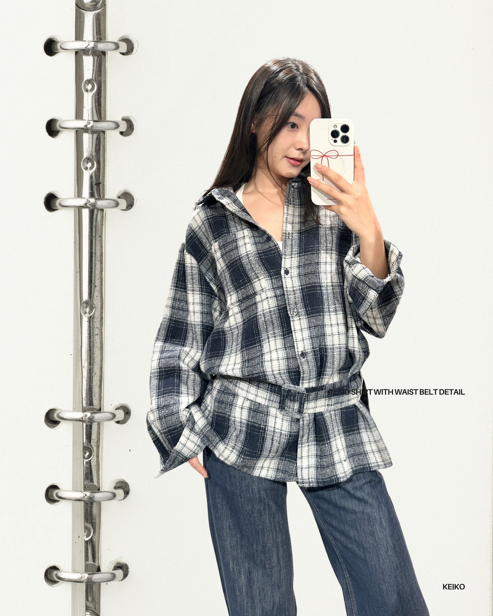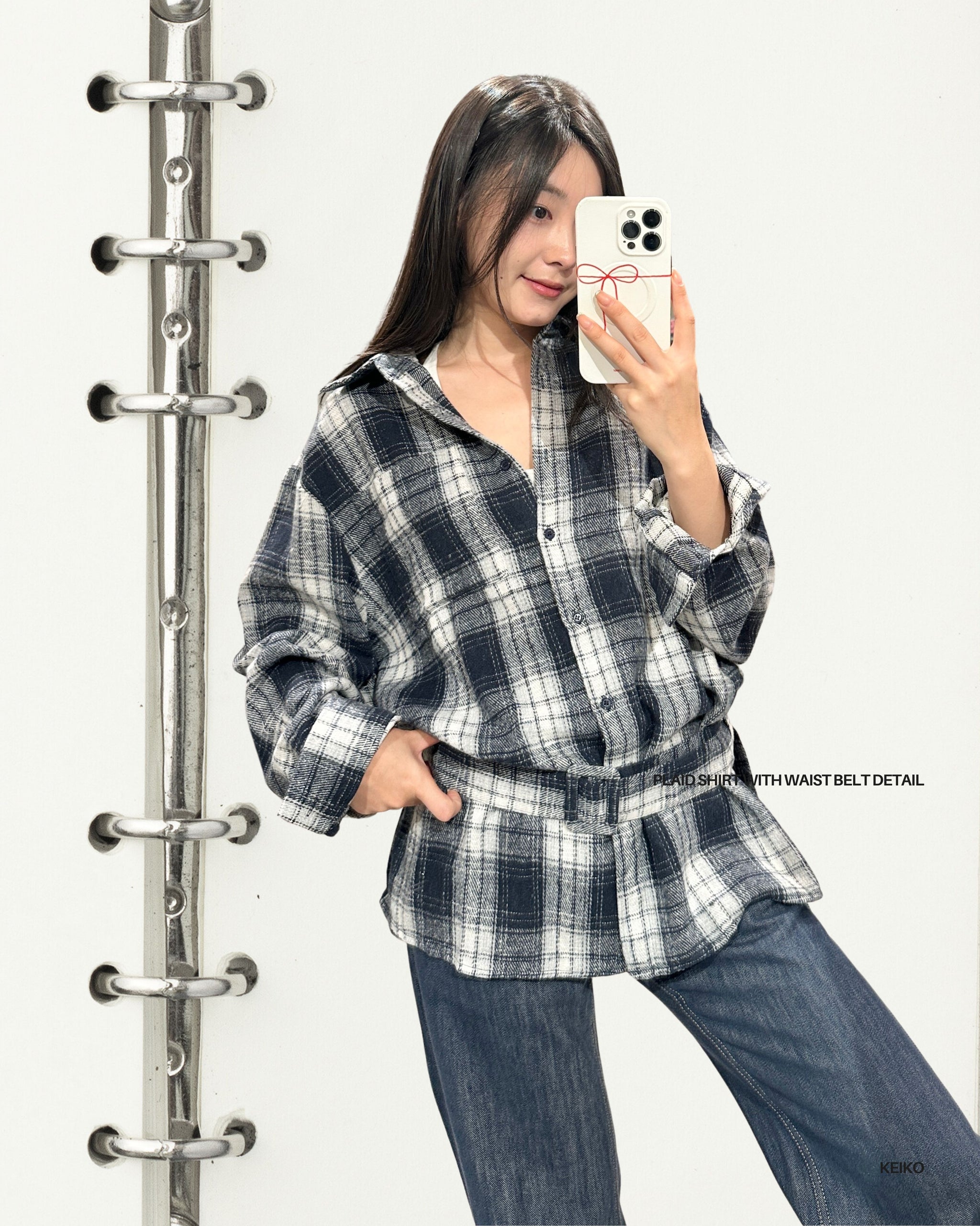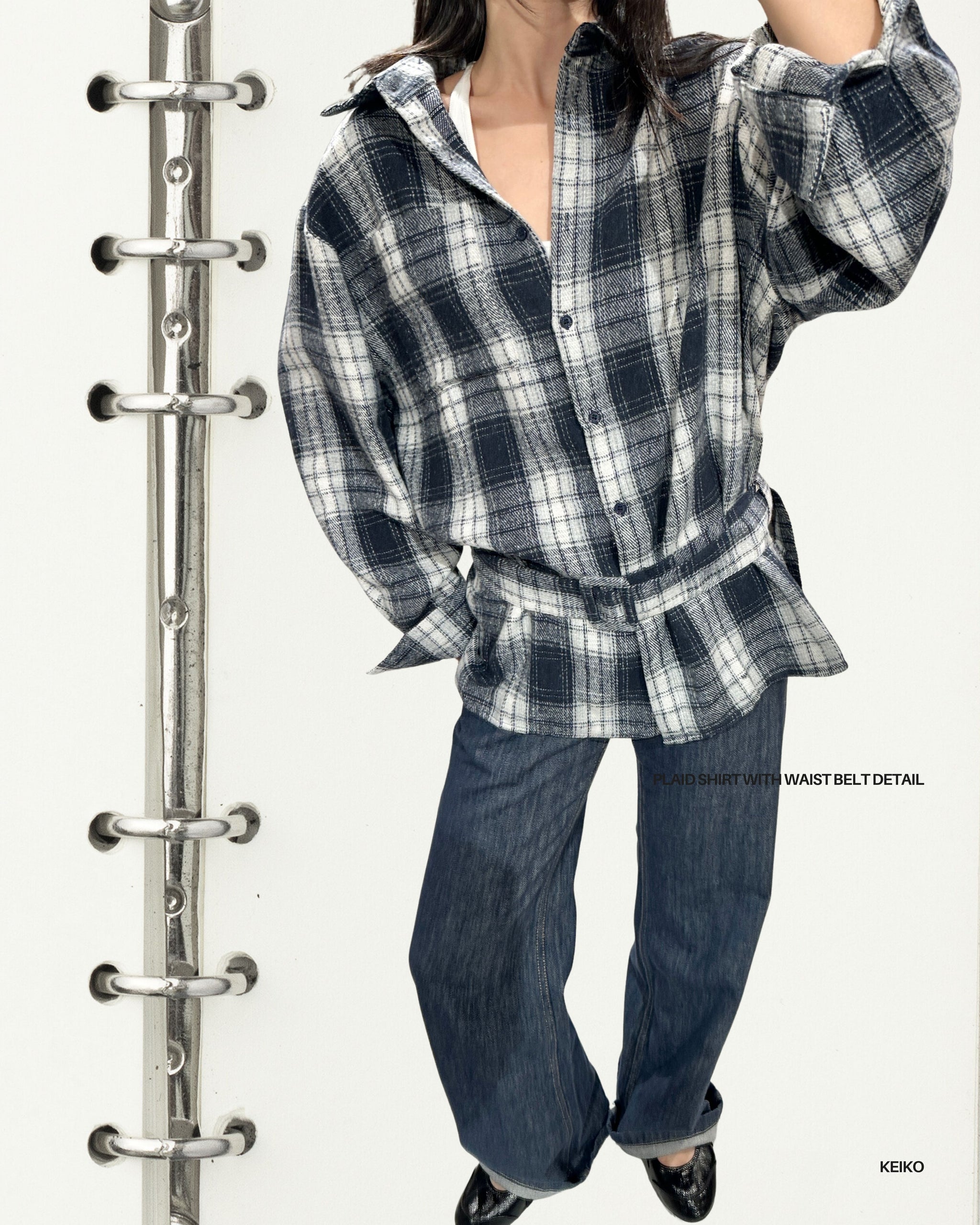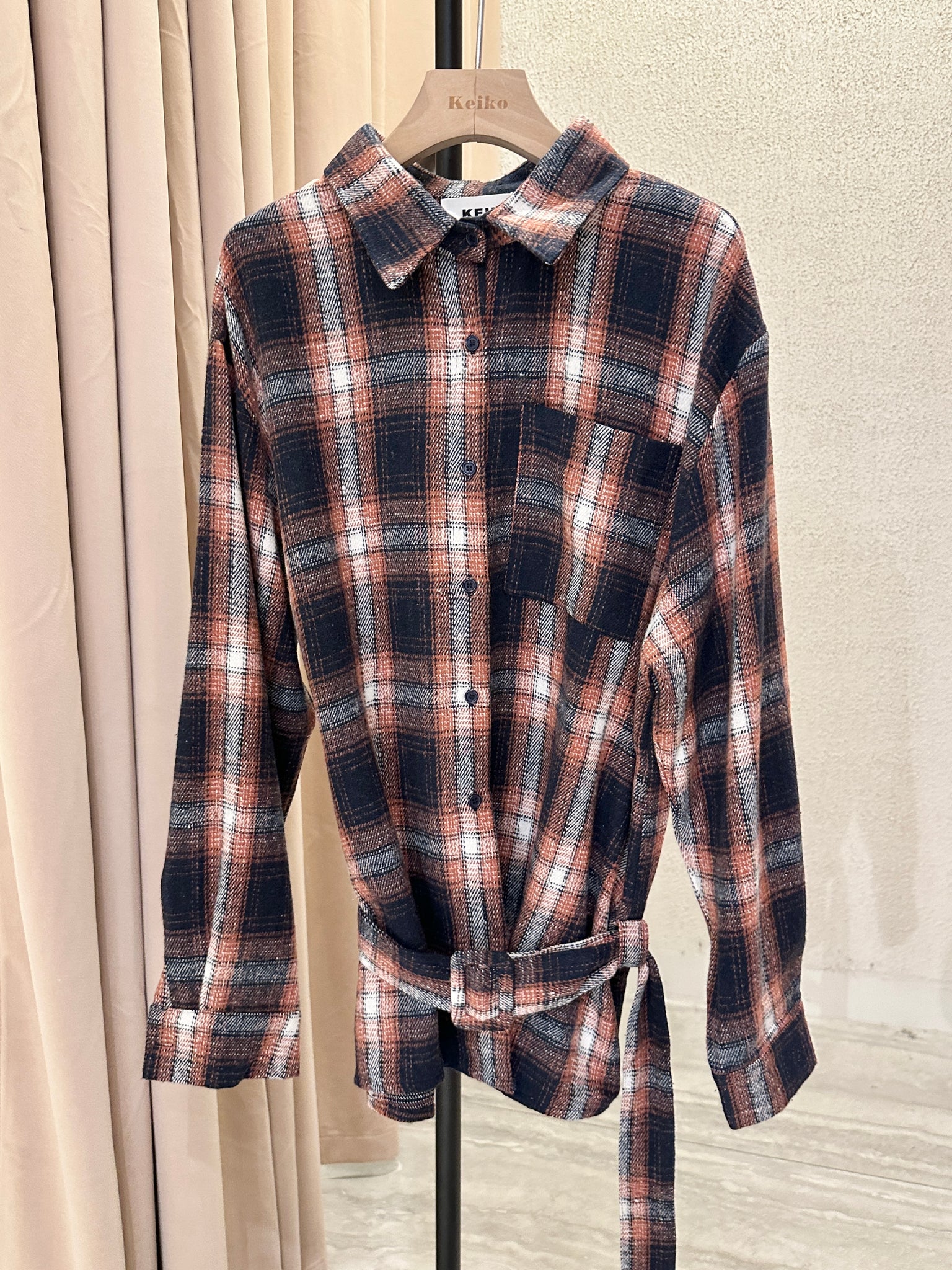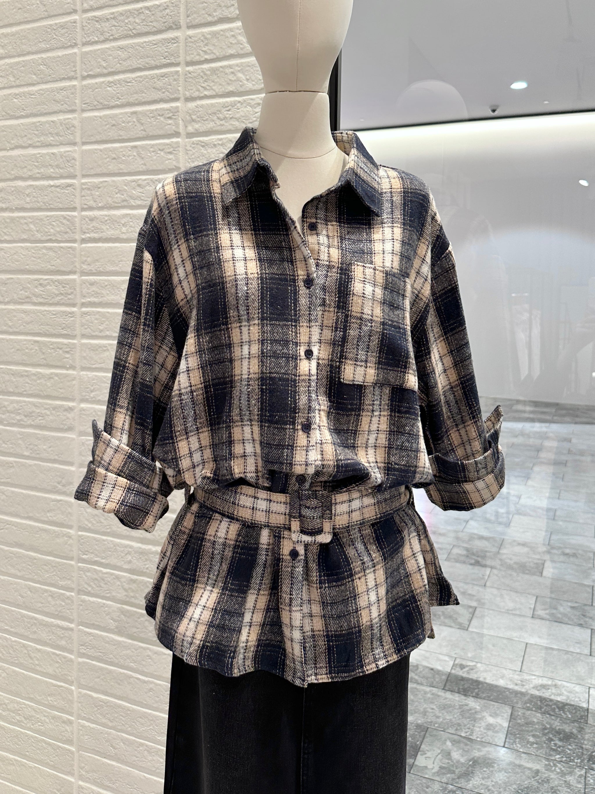 Plaid Shirt with Waist Belt Detail