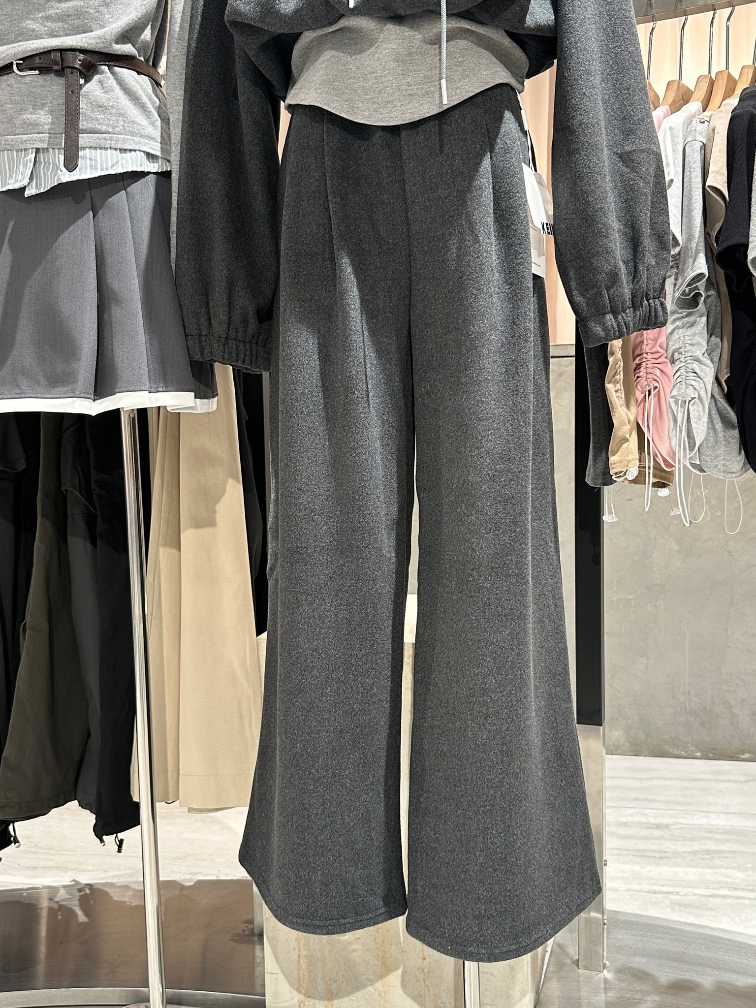 - High-waisted wide-leg pants create a flattering, elongated silhouette